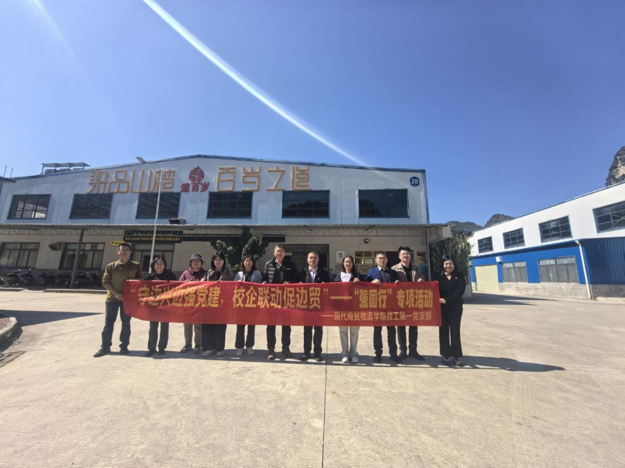 为深入贯彻党的二十届四中全会精神,深化党建与专业实践相融合,充分发挥高校在服务边境经济发展中的职能作用,2025年11月13日至14日,awc77万象城官网现代商贸物流学院教工第一党支部在支部书记林佳的带领下,前往靖西市开展“强国行”专项活动。此次活动紧密围绕边境特色产业发展和校企合作需求,通过实地调研、经验分享、技术赋能等多种形式,为边境贸易发展注入“红色动能”与“专业力量”。