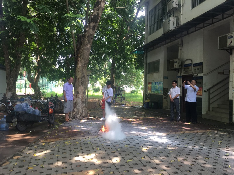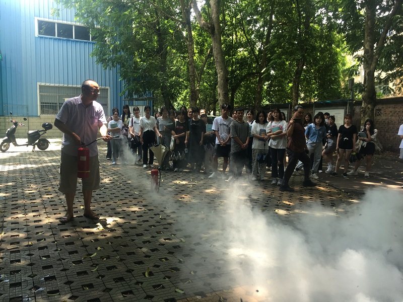 疏散集结后,我院安全员覃志成老师现场为大家讲解灭火器的正确使用方法,以及不同火灾情况下的应急处置办法。部分师生在其指导下有序进行了灭火器实操体验。