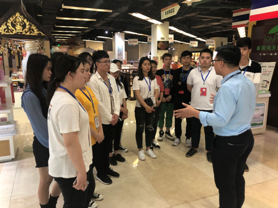 实训前带队老师与南宁嘉泰商业运营管理有限公司充分沟通,制定详细可行的实训计划,把实训内容融入到华南城三月三民俗文化节的商品推广活动中。企业方派出了强有力的实训指导教师队伍,把学生分成九组,每组配备1-2位具有丰富实践经验的资深指导教师,在销售方案策划、品牌推广方式、产品销售方法等方面从理论到实践,进行了系统的培训指导。