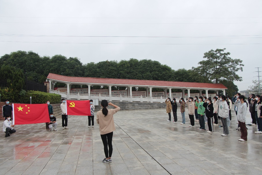 在烈士陵园公祭广场,参加活动的全体党员教师和学生整齐列队,依次向革命烈士敬献鲜花并默哀。并由学生党支部书记覃靖老师面对党旗和国旗,带领全体党员教师和学生一起重温入党誓词。