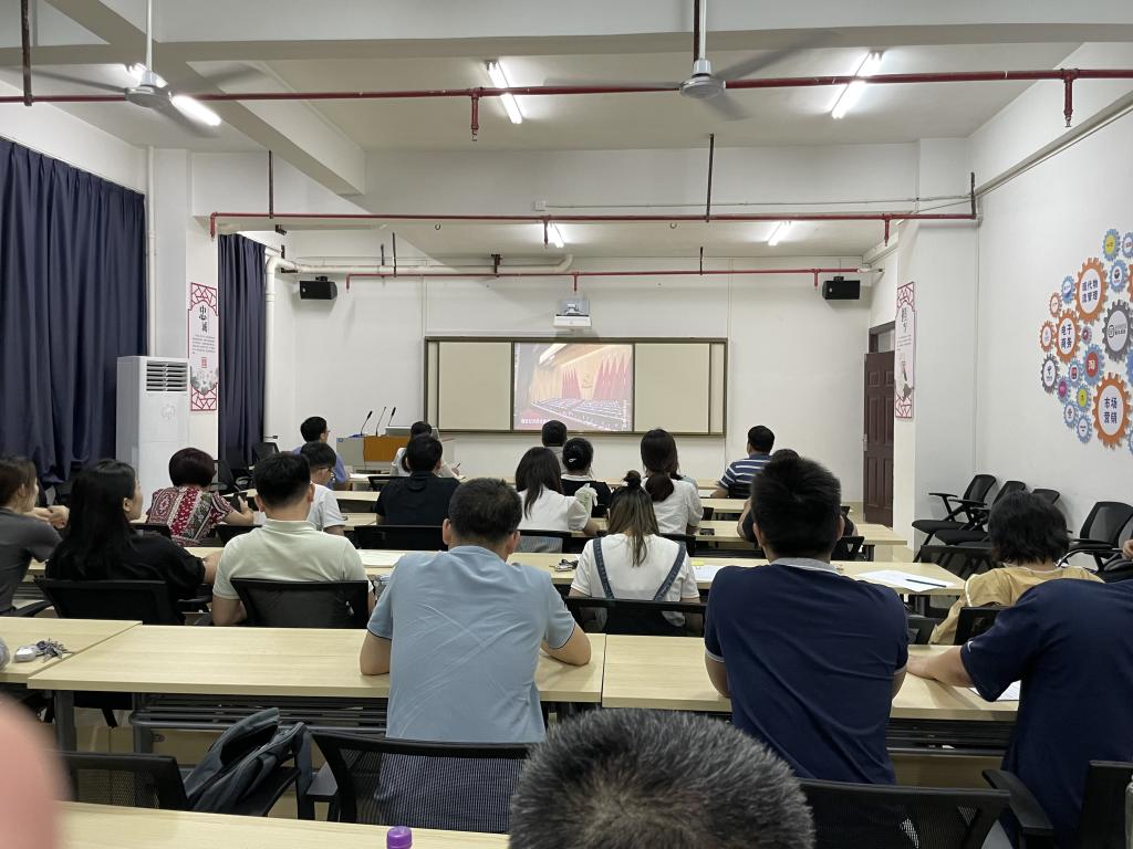 会上,院长甘宜沅跟大家一起学习学校《关于开展2023年“安全生产月”活动的通知》(桂机电职院〔2023〕54 号)文件精神,我院以“安全机电,幸福家园”为主题,通过多种渠道,采取多种形式,广泛深入地组织开展安全生产月活动,同时观影了“生命重于泰山——学习习近平总书记关于安全生产重要论述”。通过学习培训,一是让教职工加强学习的同时也把安全知识融入教育教学中,让学生在掌握基本救护技能的同时,树立安全意识,受益终身;二是在日常安全工作中,利用辅导员开主题班会的形式对学生进行安全生产活动月的动员,并制作了安全宣传专栏,各班级开展了以交通、游泳、防火、防雷电、防汛等为内容的安全教育主题班会,利用党建带团结的形式,集中对学生进行安全教育,同时组织学生参加“人人讲安全个个会应急”网络知识竞赛。