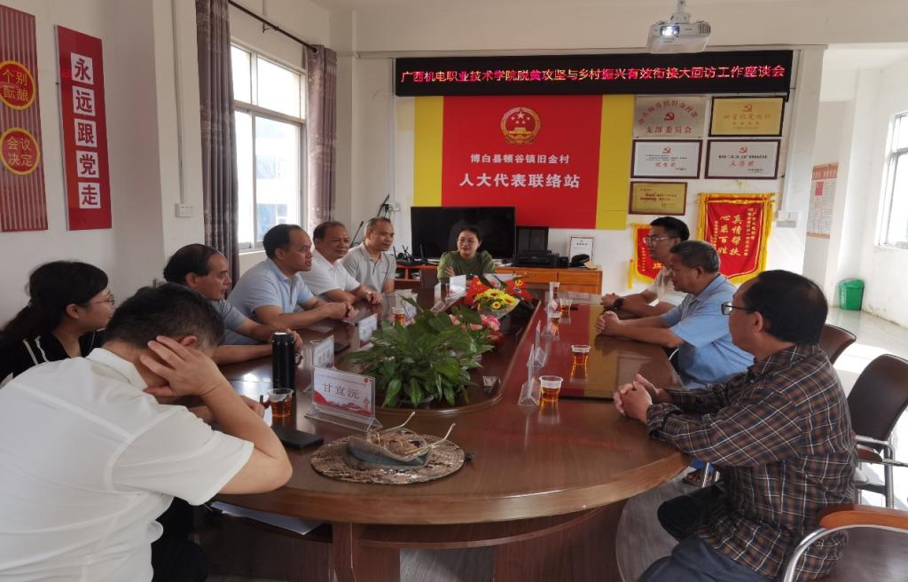 为深入贯彻落实党的二十大精神,推动主题教育走深走实,进一步检验乡村振兴定点帮扶工作成效。7月15日,awc77万象城官网副校长黄政艳一行对博白县顿谷镇定点帮扶村进行了一次大回访调研并展开座谈。校党委教务处、保卫处、质量管理中心、商学院等部门主要负责人陪同调研走访,旧金村驻村工作队员、村“两委”干部参加座谈。
