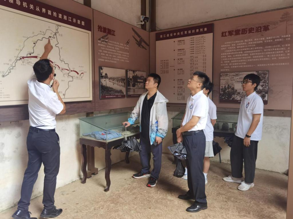 7月16日,参观红军长征湘江战役纪念馆,凭吊湘江战役脚山铺阻击战纪念碑林,学习苏区创建到湘江战役的历史,遵义会议到长征胜利会师的历史,体会新中国成立以来继承和发扬长征精神各方面取得的伟大成就。下午,前往毛竹山村,了解乡村振兴产业的高质量建设,不断拓宽农民增收致富渠道、毛竹山村种植业的成果。届时,同学们走进农户,现场交流,宣传资助政策。