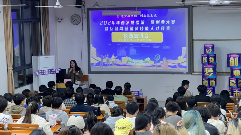 2024年11月21日,“电商引领,职面未来”校园公开课暨2024年西乡塘区第二届创业大赛宣讲在万象城官网第六教学楼101教室成功举办。本次活动由现代商贸物流学院主办,旨在应对复杂多变的就业形势,增强青年学生的创新意识和创业能力。