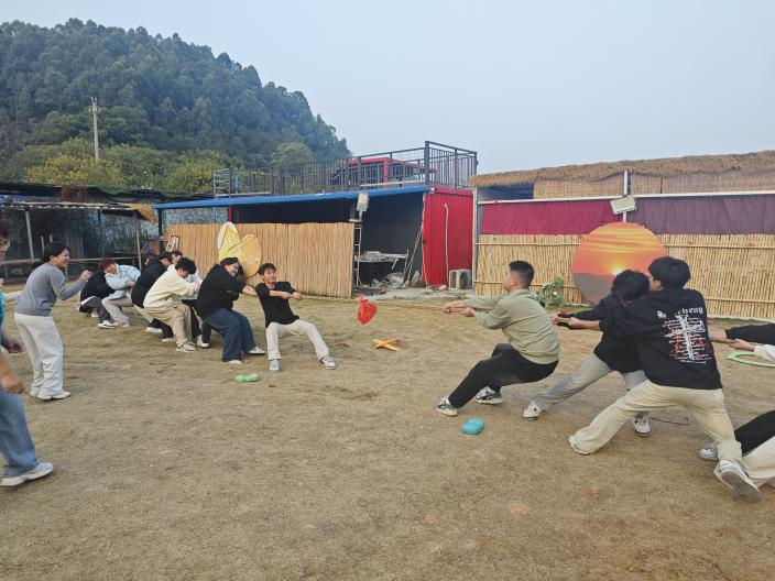 随后,一场激烈的拔河比赛拉开了帷幕。两队成员蓄势待发,随着裁判的一声哨响,双方队员齐心协力,展开了激烈的角逐。比赛不仅考验了成员们的体力与耐力,更展现了团队协作与拼搏进取的精神风貌。与党的二十大报告中强调的“弘扬伟大建党精神,自信自强、守正创新,踔厉奋发、勇毅前行”的号召相呼应。