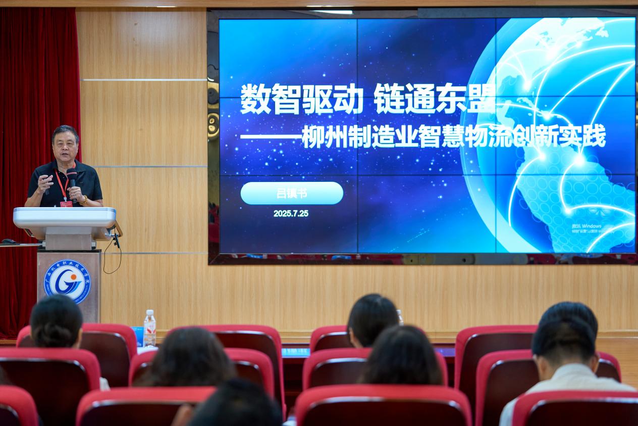 柳州市现代物流管理有限公司董事长、柳州市物流协会执行会长兼秘书长吕镇书作题为《数智驱动链通东盟——柳州制造业智慧物流创新实践》的分享。吕董事长聚焦企业在产教融合实践中的探索,分享的内容干货满满。他结合柳州市制造业智慧物流的发展实际,以真实生动的案例,详细介绍了企业如何借助数智化技术驱动物流创新,以及在与院校合作过程中,如何实现资源共享、优势互补,培养符合行业需求的专业人才。吕董事长的分享不仅展现了企业在产教融合中的积极探索与显著成效,更为在座的院校与企业提供了极具价值的参考范例,让大家对制造业智慧物流领域的产教融合模式有了更直观、更深入的了解。