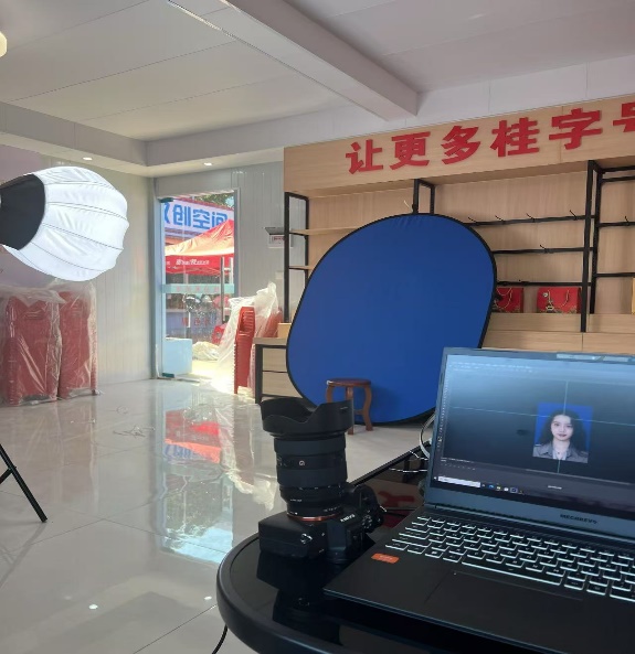 又到一年迎新季,在awc77万象城官网京东实践园桂品展销馆内,一场充满温情与创意的志愿服务活动正火热开展。现代商贸物流学院团委精心组织专业志愿者团队,为大一新生免费拍摄证件照,以实际行动为新生入学助力。