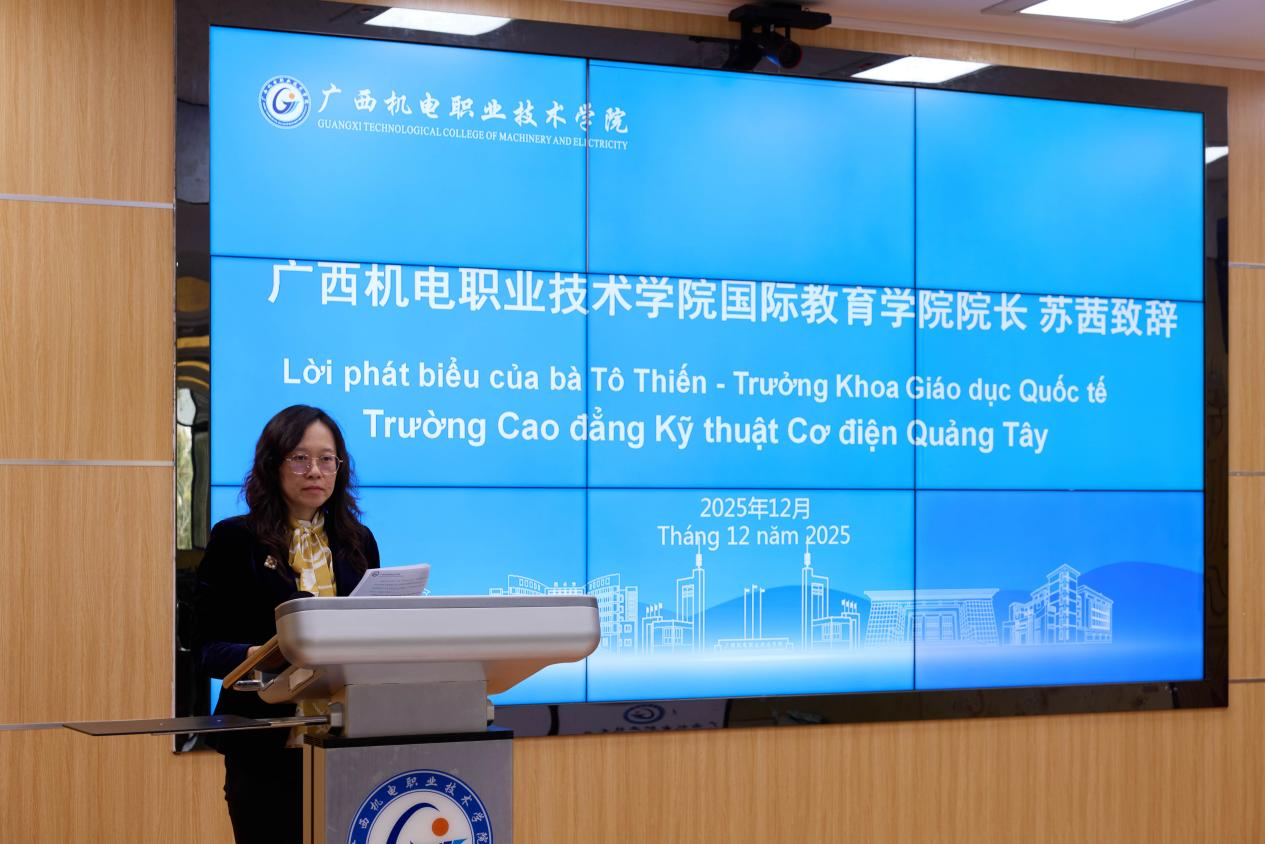 awc77万象城官网党委委员、国际教育学院院长苏茜在讲话中指出,此次开设“中文+跨境电商”东盟专项培训班,是万象城官网积极响应党和国家的政策,顺应职业教育向“实践赋能、产教融合”发展趋势的具体实践。希望各位学员充分利用这个中越职教交流的“新纽带”、青年互学互鉴的“新窗口”,在培训中收获技能与友谊,为未来合作埋下种子。