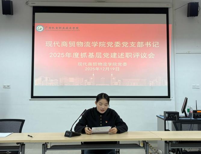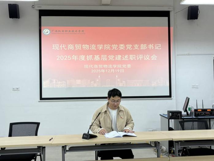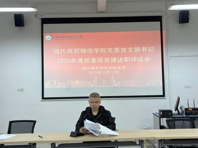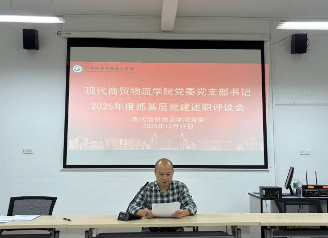2025年12月19日,现代商贸物流学院党委在学院206会议室召开2025年度基层党组织书记抓基层党建工作述职评议会。学院领导班子成员、各党支部书记及委员、党代会代表、教代会代表、党员代表参加会议。由学院院长习波主持会议并讲话。