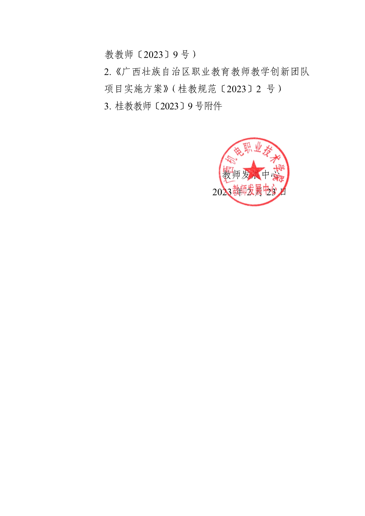 附件1:桂教教师〔2023〕9号自治区教育厅关于开展2023年自治区职业教育教师教学创新团队立项建设工作的通知.pdf