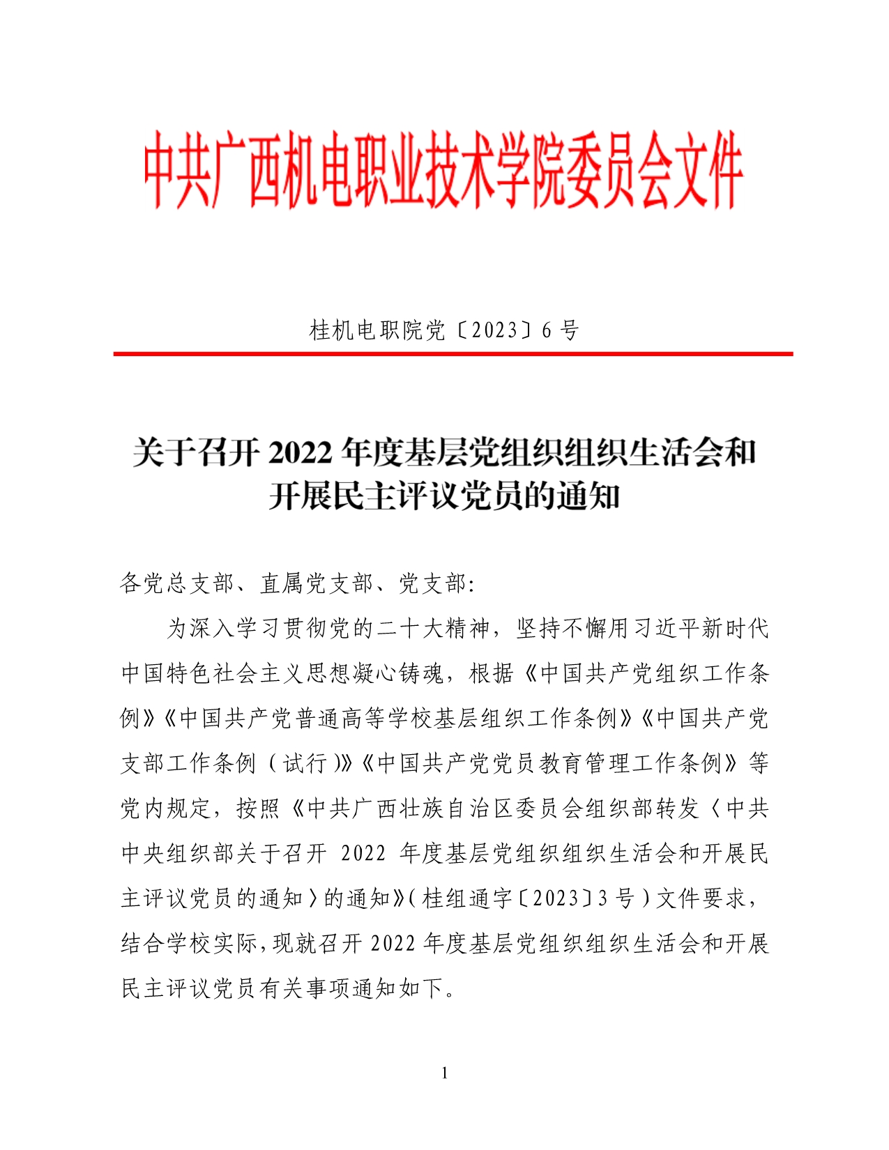 关于召开2022年度基层党组织组织生活会和开展民主评议党员的通知