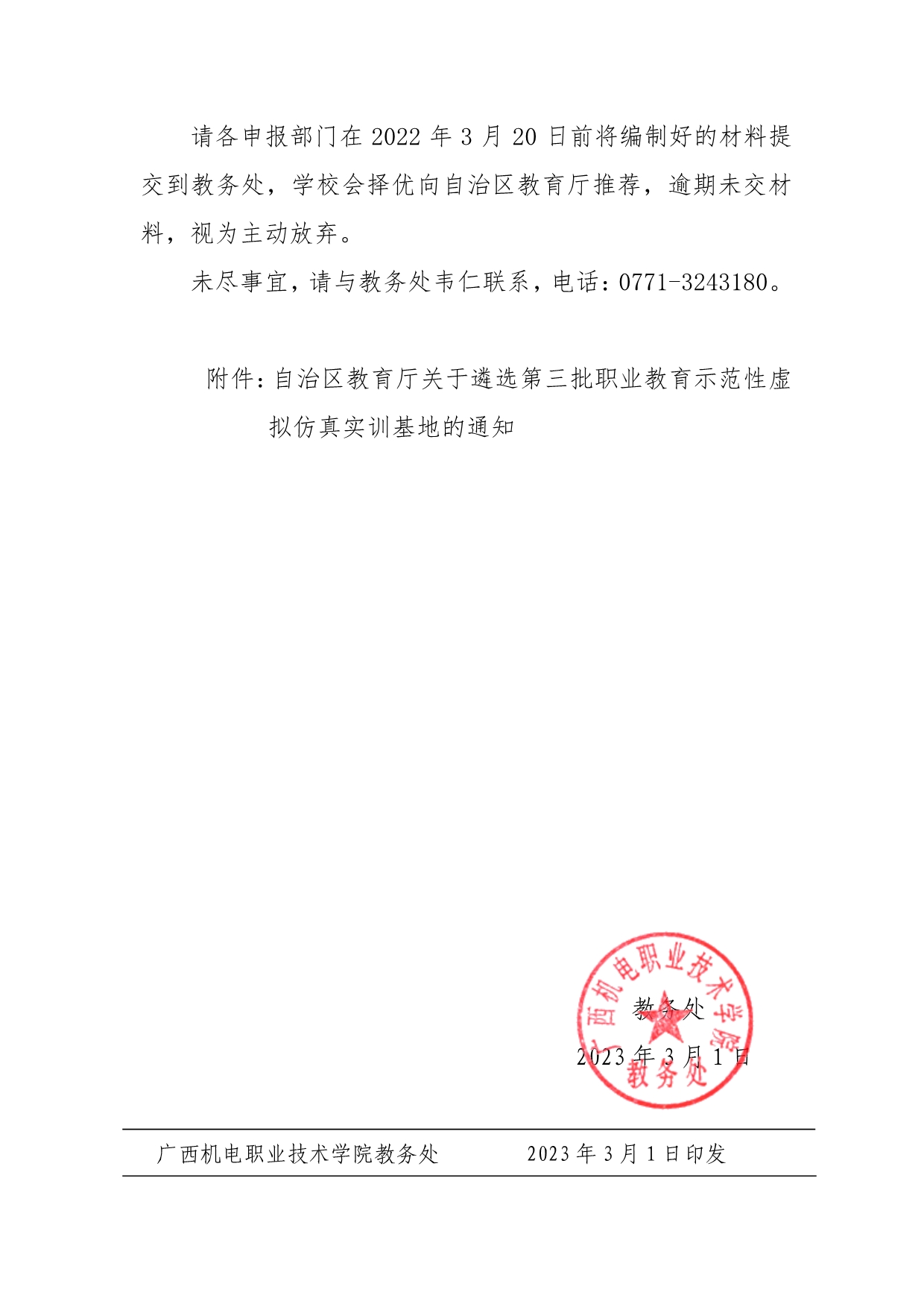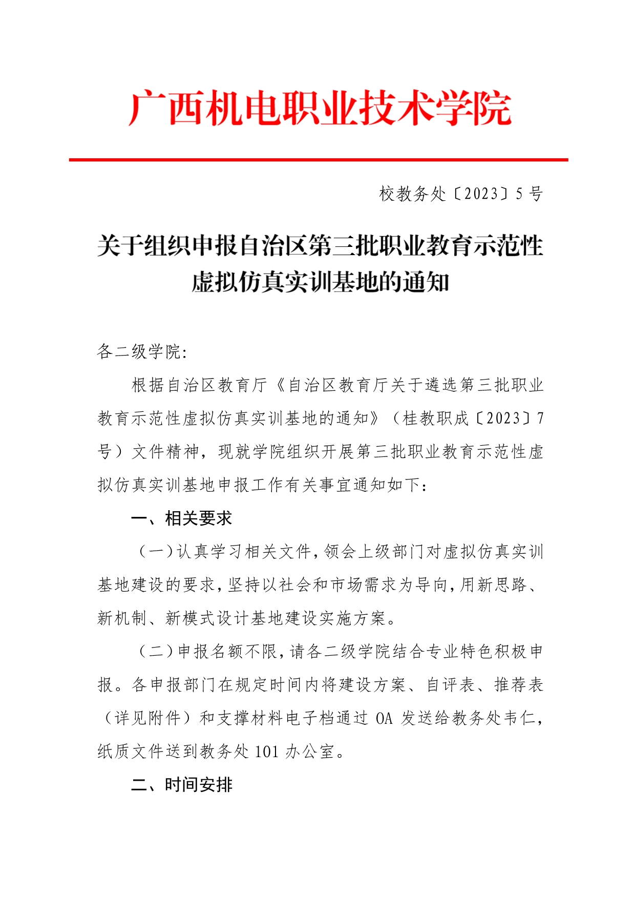 桂教职成〔2023〕7号自治区教育厅关于遴选第三批职业教育示范性虚拟仿真实训基地的通知.pdf