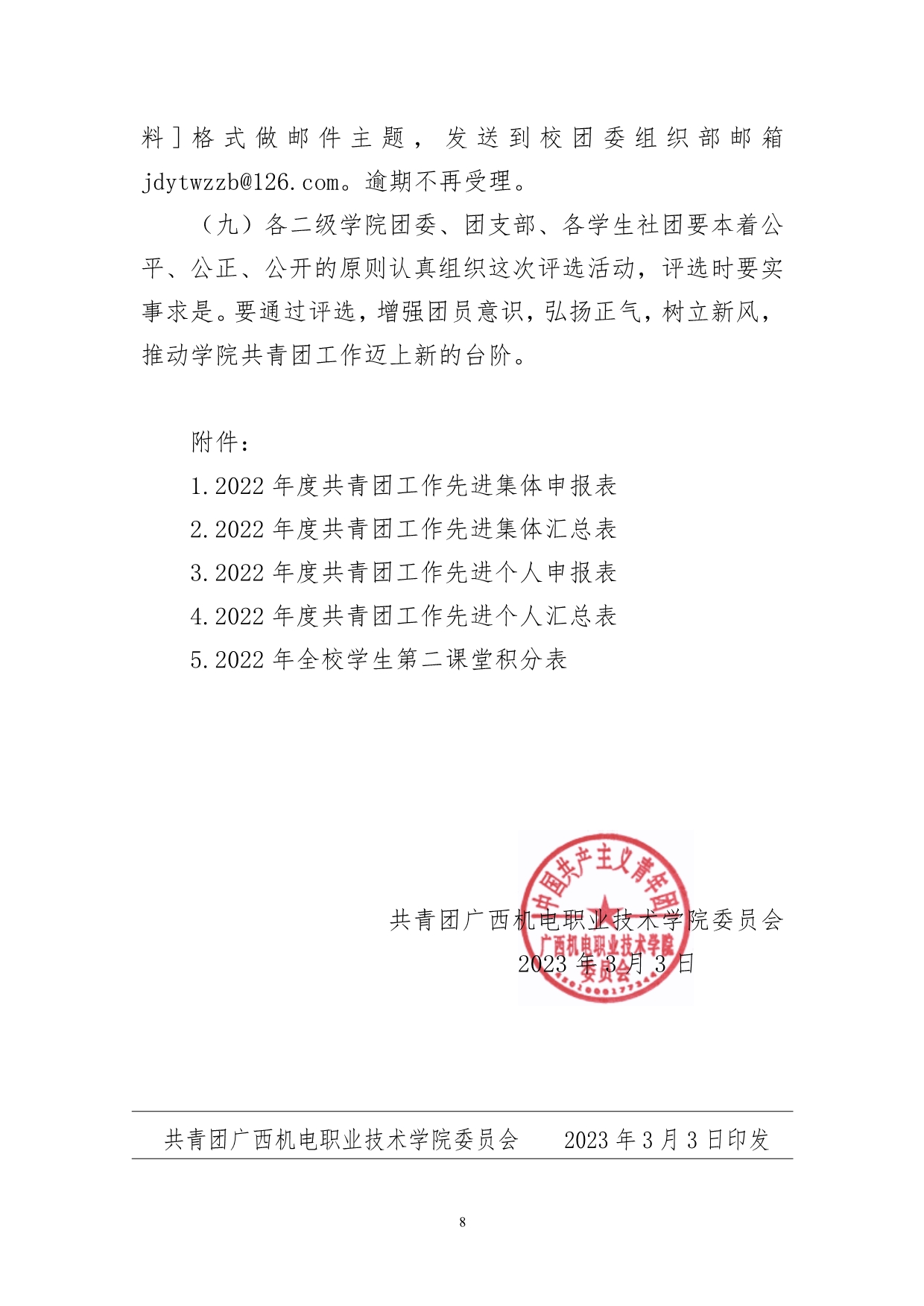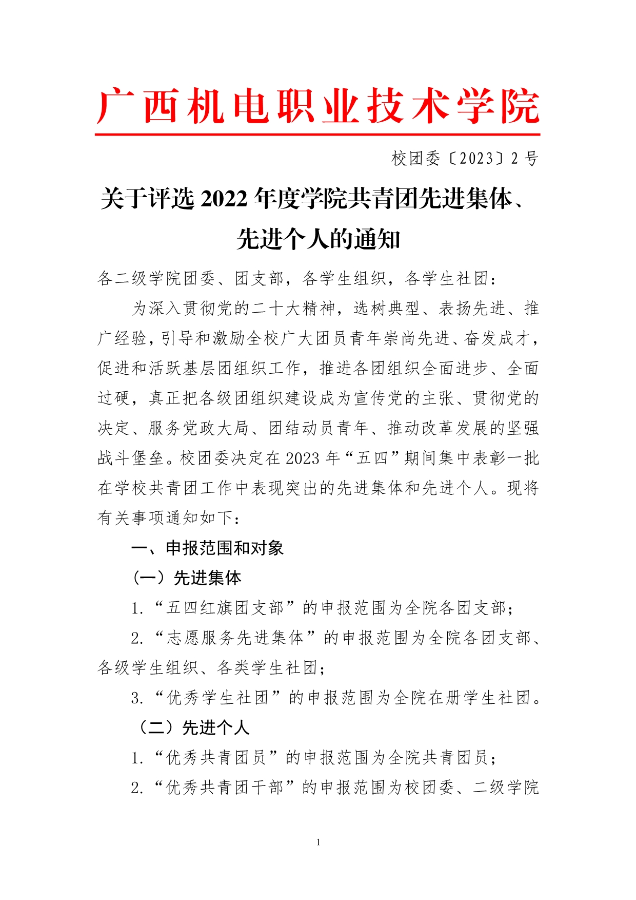 关于评选2022年度学院共青团工作先进集体、先进个人的通知