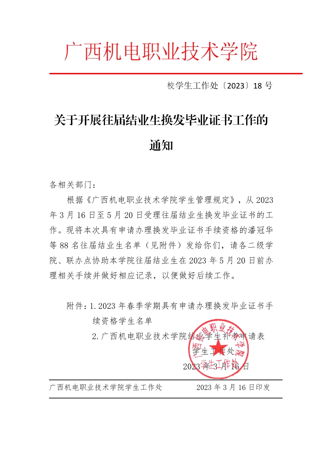 关于开展往届结业生换发毕业证书工作的通知