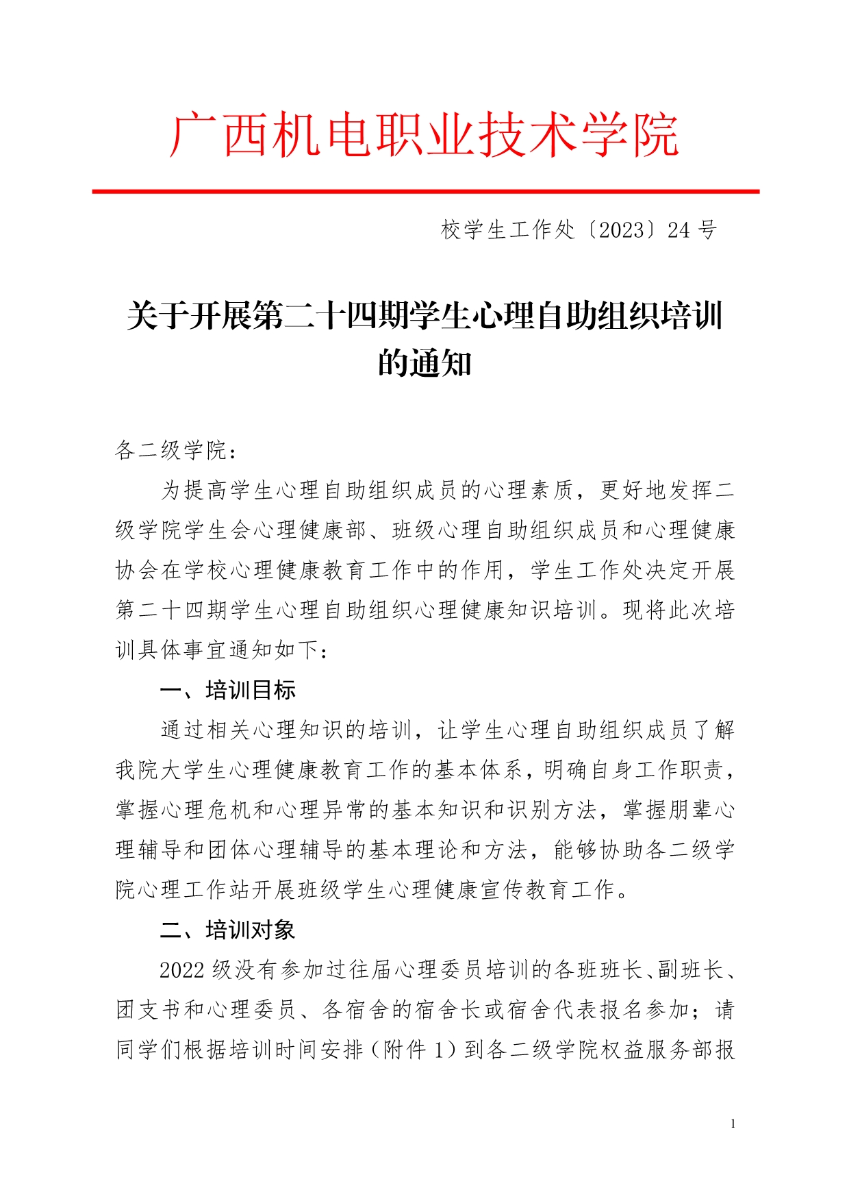 关于开展第二十四期学生心理自助组织培训的通知