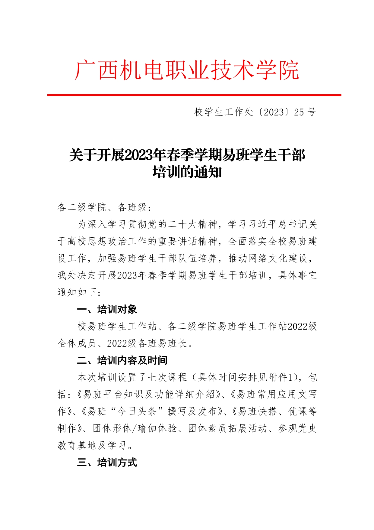 关于开展2023年春季学期易班学生干部培训的通知