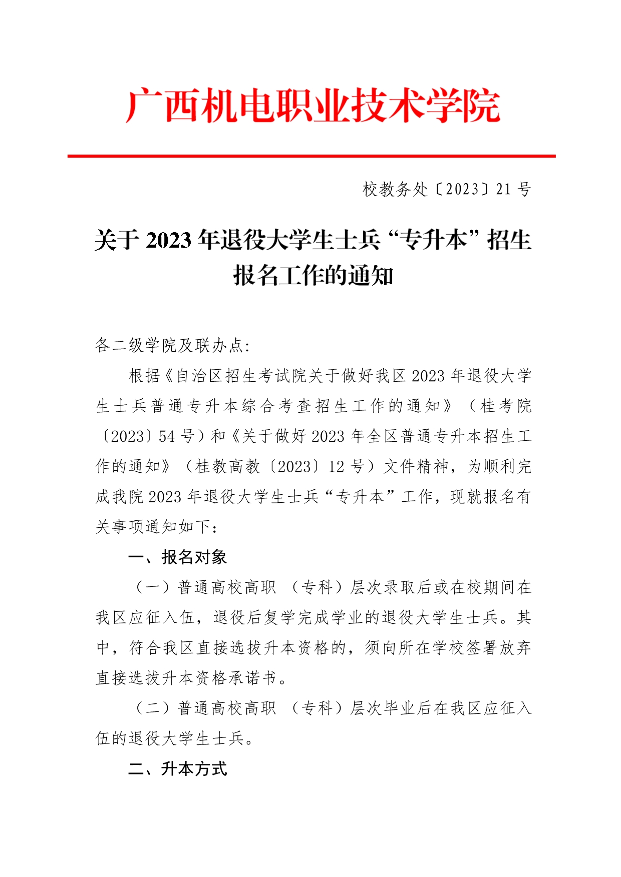 关于2023年退役大学生士兵“专升本”招生报名工作的通知