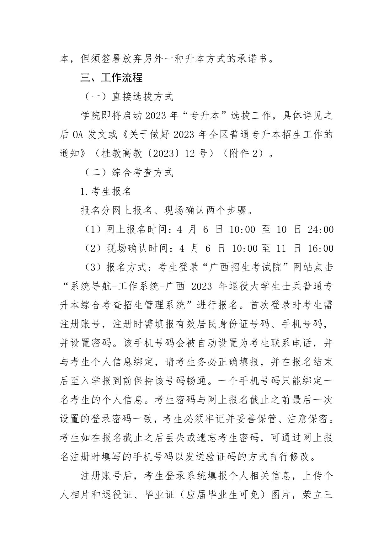 附件1:(桂考院〔2023〕54号)自治区招生考试院关于做好我区2023年退役大学生士兵普通专升本综合考查招生工作的通知.pdf
