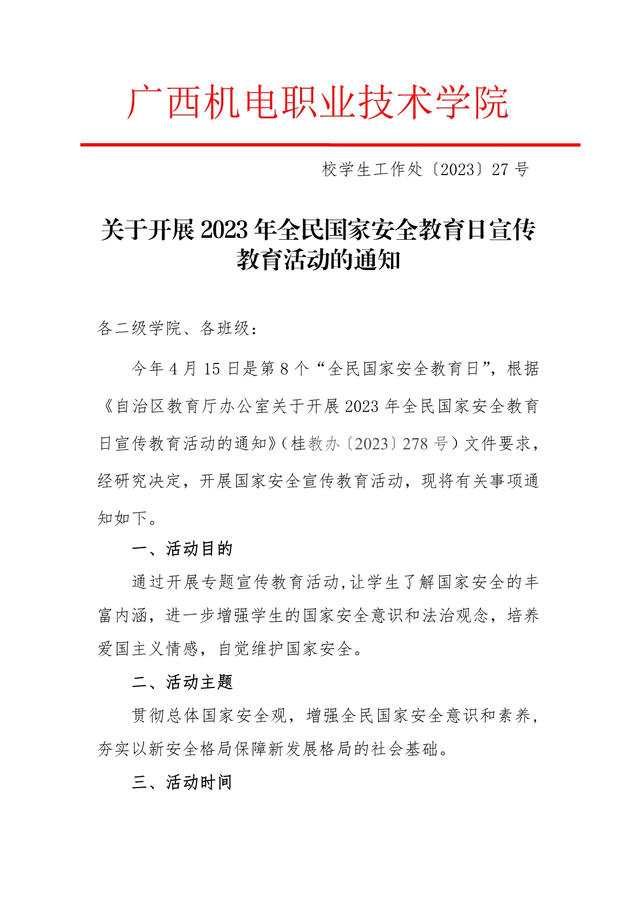 关于开展2023年全民国家安全教育日宣传教育活动的通知