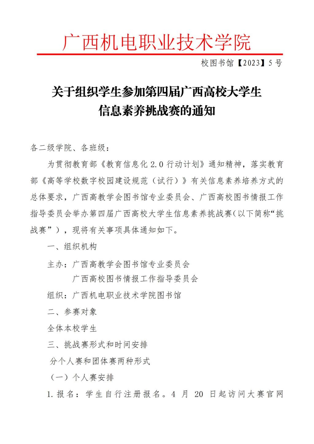 关于组织学生参加第四届广西高校大学生信息素养挑战赛的通知