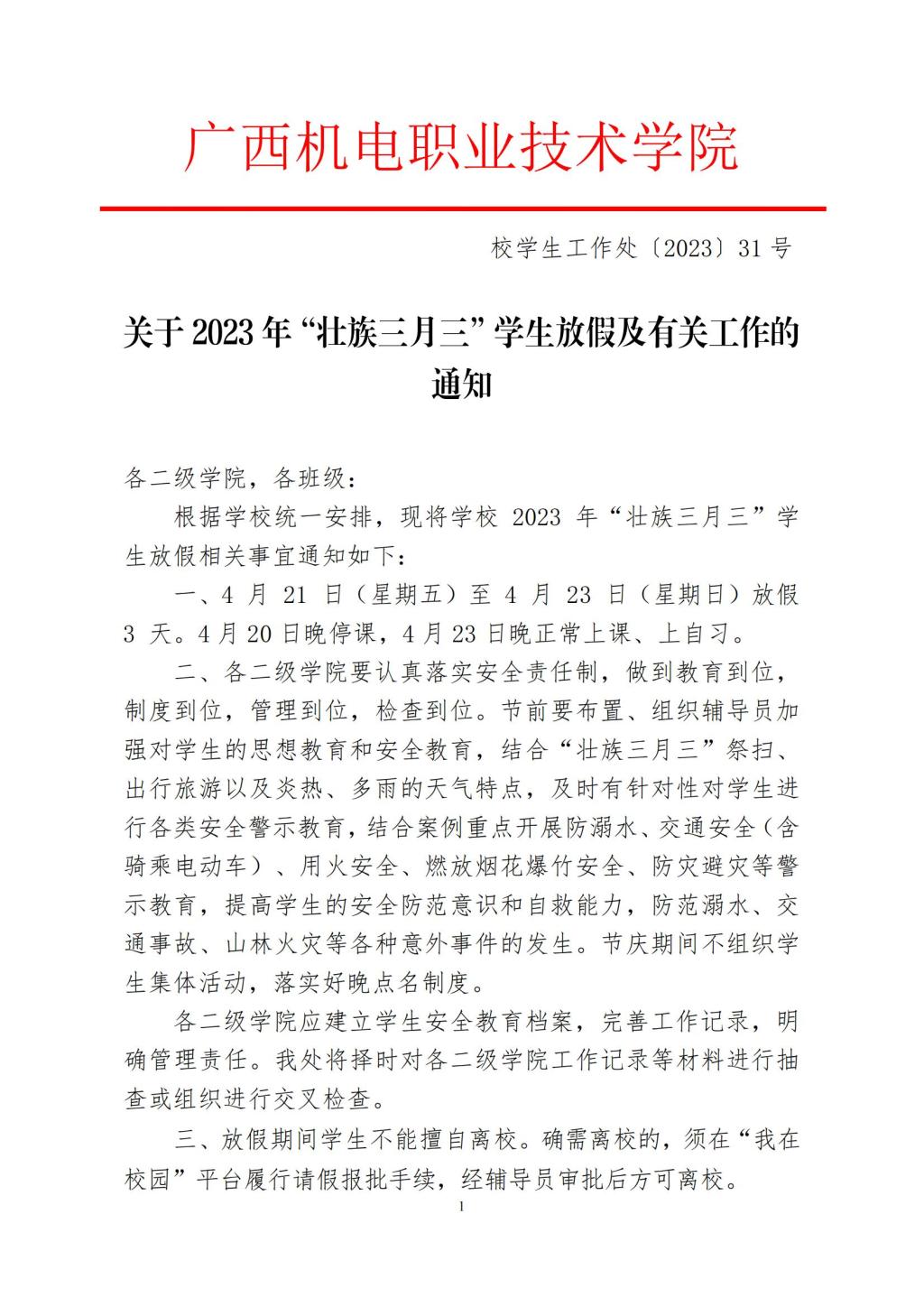 关于2023年“壮族三月三”学生放假及有关工作的通知