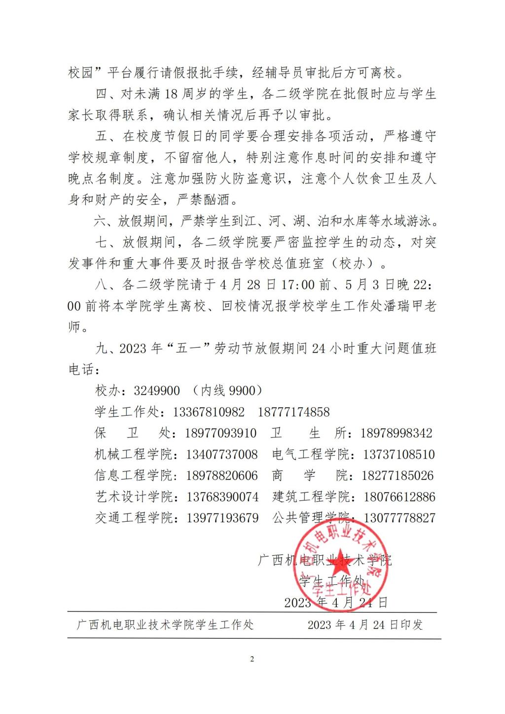 关于2023年“五一”劳动节学生放假及有关工作的通知