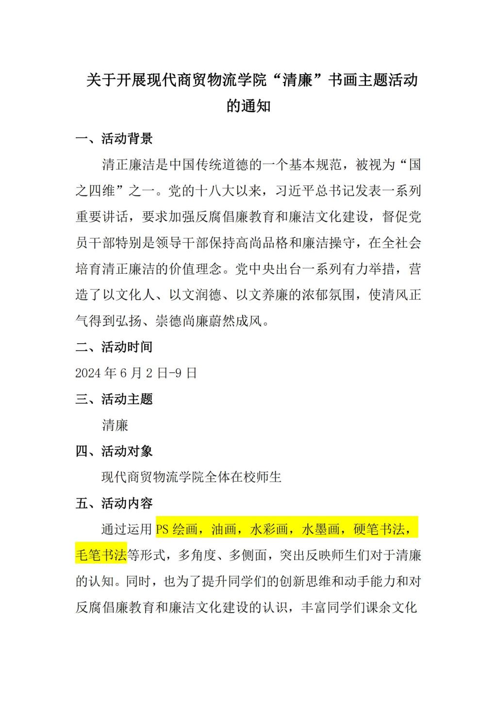 现代商贸物流学院“清廉从身边做起”书画主题活动