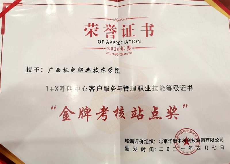 万象城官网获评2020年1+X呼叫中心客户服务与管理职业技能等级证书优秀试点院校