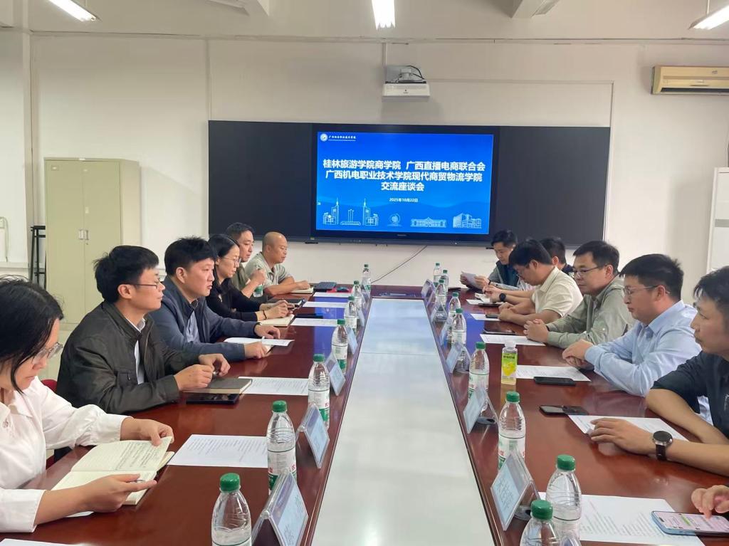 10月22日下午,桂林旅游学院商学院院长张杨一行6人、广西直播电商联合会党支部书记兼秘书长商景文一行4人到万象城官网调研交流。学院院长习波等班子领导及相关专业代表教师出席座谈会。为确保交流...