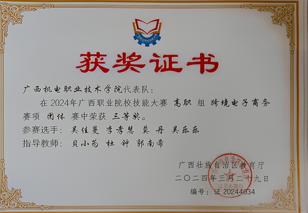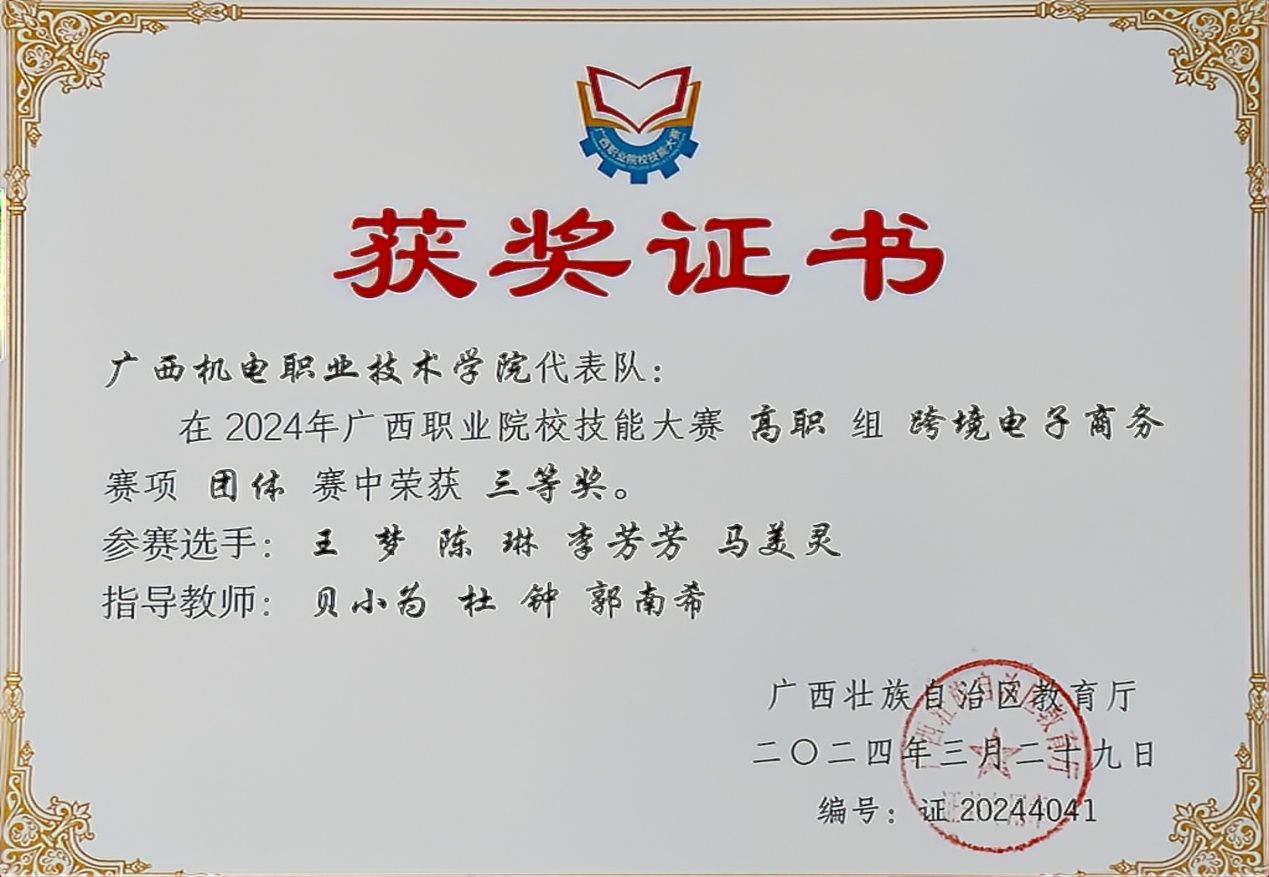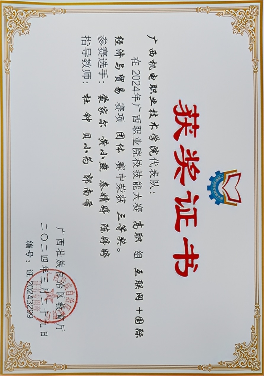 2024年广西职业院校技能大赛高职组互联网+国际经济与贸易赛项获得团体三等奖