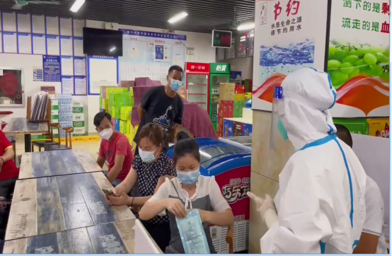 疫情防控演练分别模拟食堂就餐学生出现红黄健康码、学生发热等场景。重点演练学生出现红黄健康码人员的发现报告、医疗检测、隔离安抚、应急处置、联防联控、风险解除、后续处置等环节,达到了熟悉应急处置流程、提高疫情防控的实战水平,有效检验了在校园食堂内应对突发疫情事件的快速反应、沉着应对、科学调度、有效处置等综合能力。演练全程环节紧凑、分工明确,高效有序,各项演练任务顺利圆满完成。