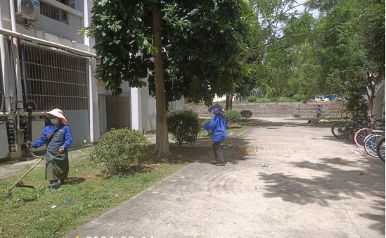 暑假期间,校园内的绿化带和道路两旁,总能看到后勤绿化保洁团队的忙碌身影。他们手持修剪工具,精心修剪每一株花草,清理每一处落叶与垃圾,让校园在夏日的阳光下更显生机勃勃。