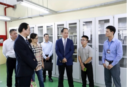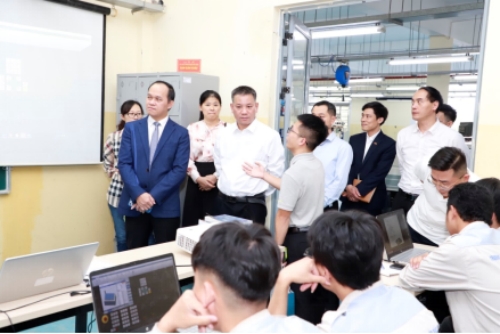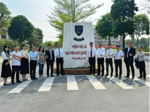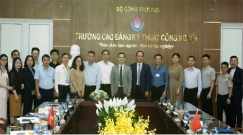 在北宁工业大专,代表团得到阮德刘校长率领的学校班子成员及部分中层干部的热情接待,北宁省政府机构劳动荣军与社会服务部职业教育管理处的负责人出席座谈会,参观了校容校貌、实训基地、教学场所,双方就教师互访、学生交换、模式互鉴、资源共享等方面展开研讨,并签订校-校合作协议,对中越联合培养国际化技术技能人才充满期待。
