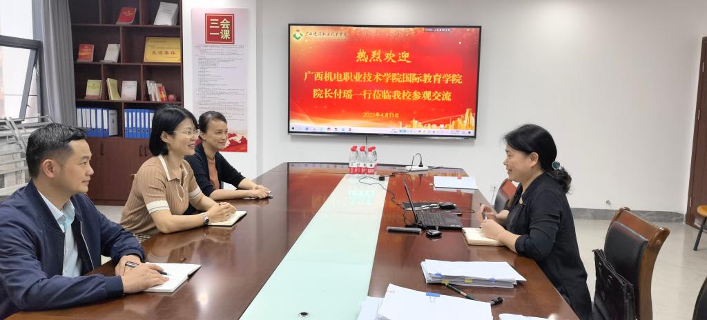 4月13日下午,国际教育学院付瑶院长、刘敏杰副院长、余翔老师及公共管理学院曾恺老师一行4人,前往广西建设职业技术学院国际教育学院进行交流学习。