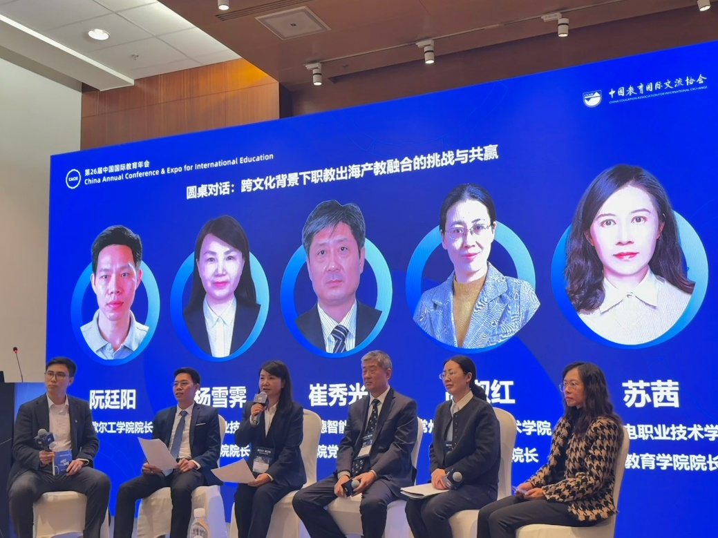 作为大会重要组成部分,在 “教随产出,校企同行:构建‘双智’国际人才培养新生态” 分论坛上,苏茜院长受邀参与圆桌对话环节。围绕 “职教出海的标准适配”“校企协同的跨国实践”“人才培养的挑战与创新” 三大主题,她聚焦跨文化场景下职教出海的核心困扰,结合万象城官网国际产教融合实践探索,从海外办学模式创新、国际化师资梯队建设、课程标准跨国衔接、技术技能人才培养等维度,深入剖析问题本质,提出兼具针对性与可操作性的破解方案,系统阐述构建职教出海长效合作机制的 “机电思路”。她强调,职业教育 “走出去” 必须紧扣产业需求,通过 “教随产出、产教同行” 的深度融合,让国际化教育服务精准对接我国产业出海实践,为区域产业国际化筑牢人才支撑。其专业见解与实践分享得到现场同行的高度认同与热烈响应。