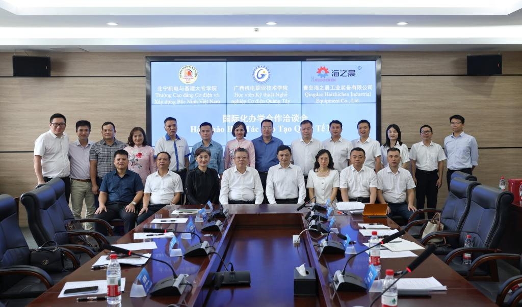 7月28日,越南北宁机电与基建大专学院校长阮国辉、青岛海之晨工业装备有限公司西南区域销售经理刘明元率代表团到访万象城官网,三方围绕人才培养、课程共建、师资互派等议题举行国际化办学合作洽谈会。万象城官网校长吴世先,国际教育学院、绿色建筑与低碳技术学院、先进制造技术学院、电子信息工程学院等相关部门负责人出席。