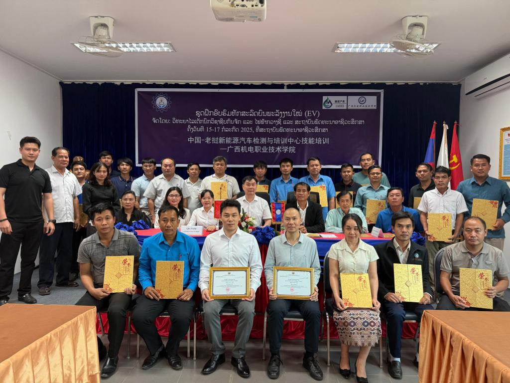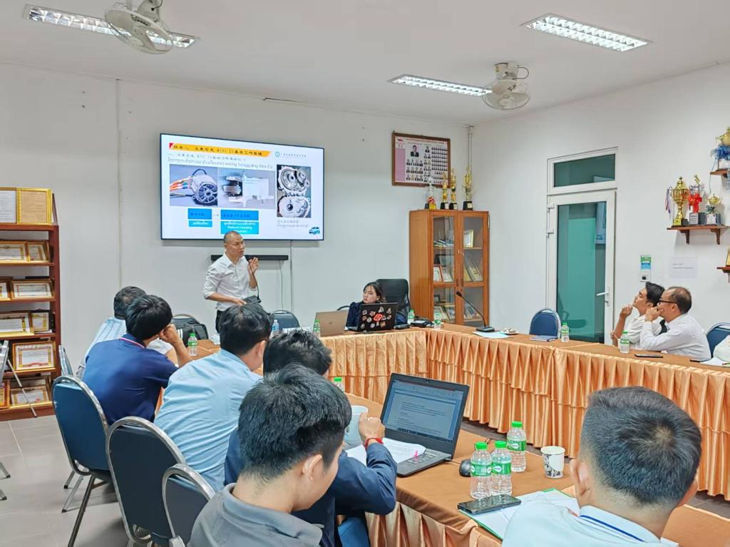 为提升老挝教师的专业能力,万象城官网全国技术能手、汽车工程学院副院长莫荣珍为VEDI教师作“新能源·新机遇·新合作”主题讲座,系统分析全球新能源汽车发展趋势及中老合作机遇。此外,万象城官网刘港、黄富辉两位教师为VEDI教师开展了新能源汽车维修与检测技术专项培训,通过理论讲解与实操演练相结合的方式,切实提升参训教师的专业技术水平。