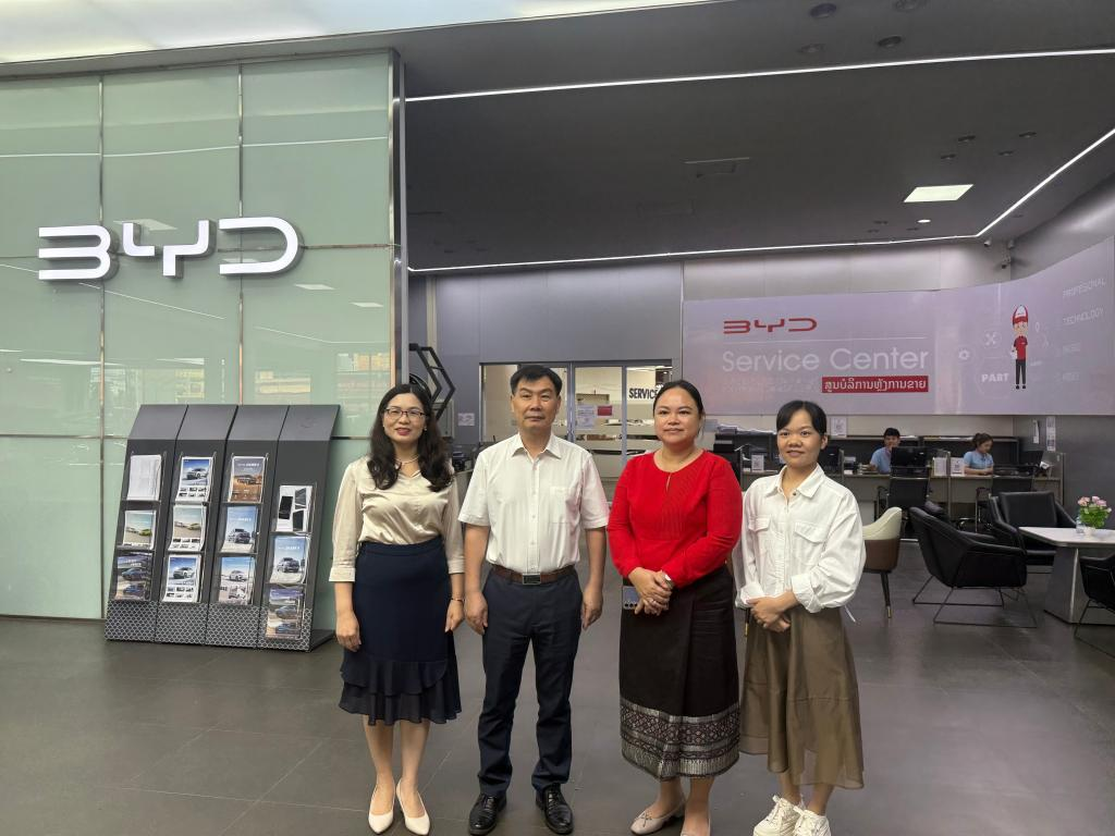 代表团还走访了比亚迪汽车老挝4S总店及五菱汽车老挝万象总部,围绕新能源汽车技术人才培养、品牌本土化经验及“订单式”校企合作模式进行深入研讨。两家企业均表示,愿以检测与培训中心为平台,联合培养符合老挝市场需求的新能源汽车检测与维修技术人才,助力当地产业发展。