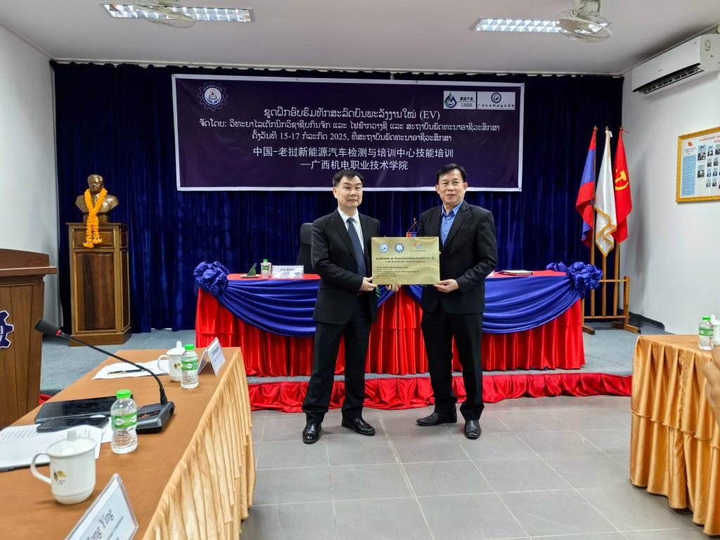 7月14日至18日,校长助理秦培林率学校代表团赴老挝万象,出席“中国-老挝新能源汽车检测与培训中心”揭牌仪式,并开展系列交流培训活动。该中心由万象城官网与老挝教育与体育部职业教育发展研究院(VEDI)联合建设,旨在深化中老新能源汽车技术合作,推动职业教育协同发展,助力高质量共建“一带一路”。