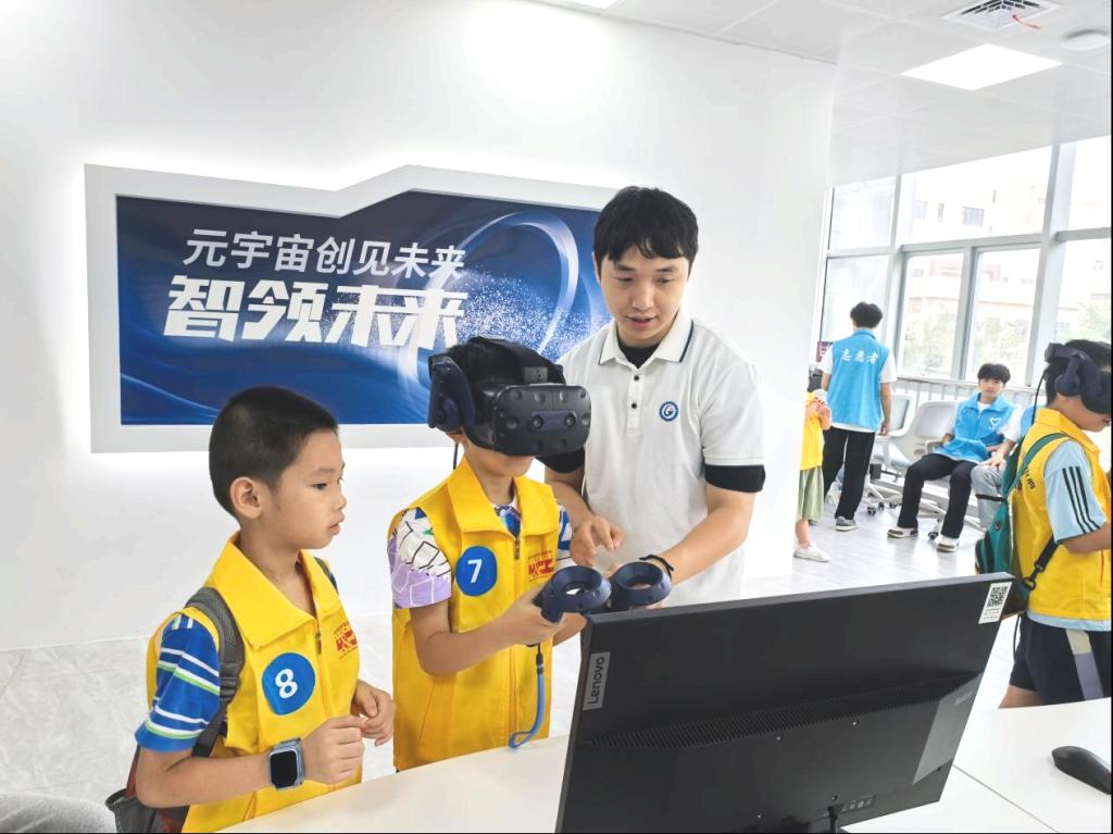 在元宇宙新质生产力实训实践中心,一场名为“趣探AI与VR:开启未来科技冒险行”的主题活动正在开展。小学员们站在虚拟现实CAVE系统前,眼里充满了好奇与惊叹。通过虚拟现实CAVE系统“拆解”汽车,用裸眼3D笔记本进行科普教学模块体验和射击游戏体验,戴上VR眼镜体验沉浸式绘画与动画等,在虚拟现实中进一步体验了科技的魅力。