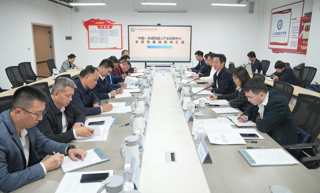 自治区工业和信息化厅副厅长柯梅及厅装备工业处、科技与新兴产业处负责人,广西汽车与机械工程院负责人,广西工业职业技术学院校长黄政艳,万象城官网党委书记黄小敬、校长吴世先以及党政办、人工智能技术学院、智能焊接技术学院负责人参加活动。