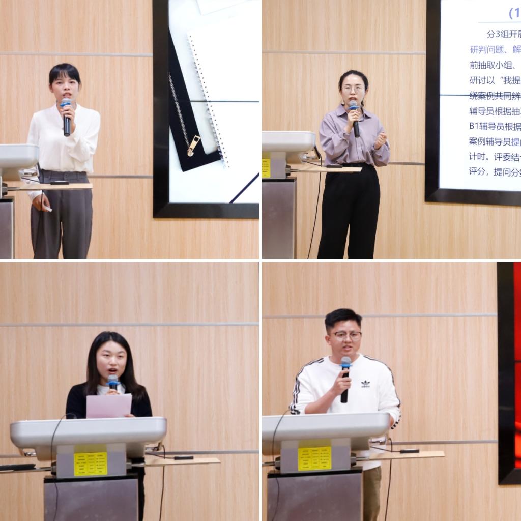 荣获第十四届广西辅导员素质能力大赛一等奖选手陈丽婷、彭莉两位老师就自身备赛经验作了经验分享,陈丽婷结合自身首次参赛经历,从大赛出题思路、试卷结构分析、题目立题解意、实战环节表现及辅导员职业成长路径等维度深入剖析本次比赛,围绕大赛基础知识测试、谈心谈话两个环节,为大家讲述自身的备赛过程和备赛技巧;彭莉就如何突破自我分享第二次参赛心得,围绕学情分析、案例研讨环节,梳理备赛重点、破题思路及得分技巧等要点。第一期辅导员训练营训练标兵代表周晓、罗宗铭对赴桂林观摩大赛进行了心得分享,他们从观摩者的角度就大赛赛制、观赛感悟以及个人收获三个方面进行分享。