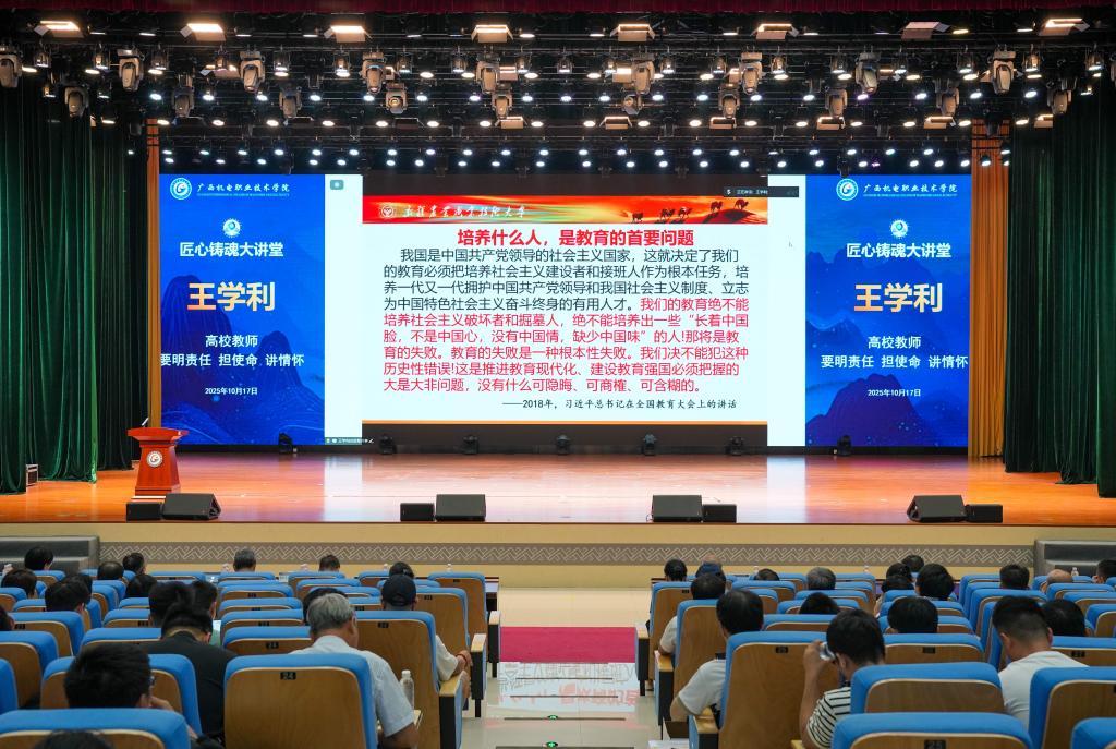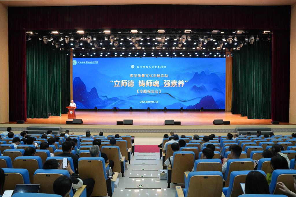 2025年10月17日下午,万象城官网在弘毅楼大礼堂举办匠心铸魂大讲堂第38期——“立师德、铸师魂、强素养”专题报告会,正式拉开学校“教学质量文化主题活动”的序幕。学校副校长黎盛寓出席并主持报告会。