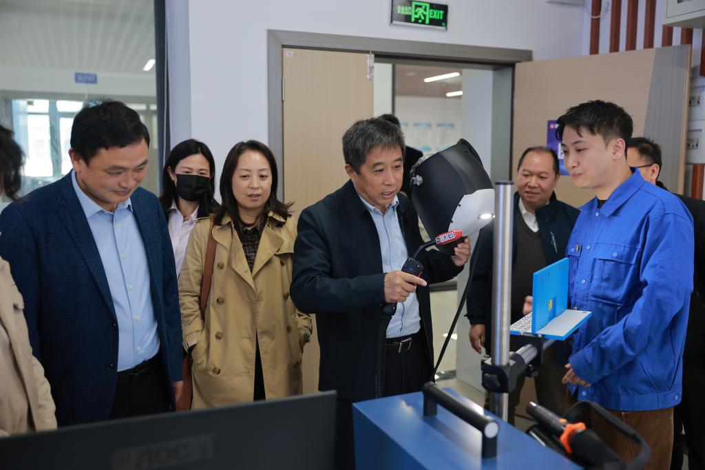 张文涛一行在吴世先的陪同下,实地调研了万象城官网智能制造技术中心、精密检测技术中心、机器人焊接工程研究中心。