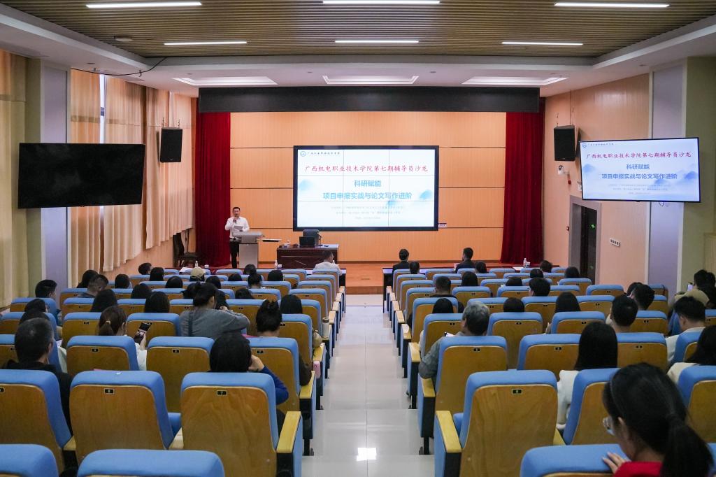 本次沙龙由学生工作部主办,电子信息工程学院“电”燃梦想辅导员工作室承办。沙龙精准聚焦辅导员科研能力提升需求,特邀南宁师范大学王忠昌教授与广西民族大学茹洋庶博士带来专题授课。王忠昌教授以“选题-申报-落地”为主线,从教科研课题本质解析、选题“四大技巧”到申报书撰写“八大策略”,为辅导员破解项目申报难点提供了系统化实操方案。茹洋庶博士则聚焦AI赋能教研,分享AI工具在论文选题、文献检索与内容生成等环节中的应用,构建“智能AI+学术”的科研创新框架,为智能化时代辅导员科研效率提升指明方向。