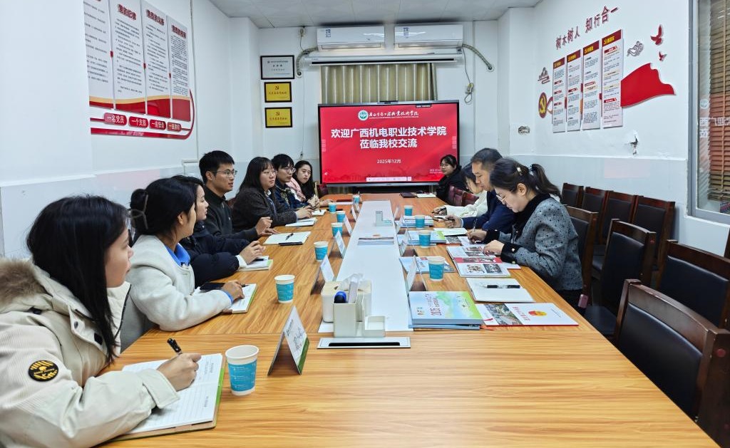 12月3日,调研团队赴广西生态工程职业技术学院开展交流学习。座谈会上,双方围绕思想引领、志愿服务、“第二课堂”成绩单制度、学生社团建设及暑期“三下乡”社会实践等重点工作深入交流。团队深入了解该校在党建引领团建、团务工作规范化推进、志愿服务品牌塑造、社团文化涵养等方面的先进举措与成功范式,为万象城官网相关工作的优化升级提供了宝贵借鉴。