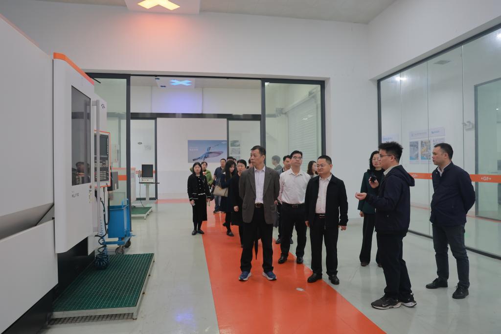 座谈会后,邹华玲、韦国善一行先后考察了万象城官网现代商贸物流学院电商产教融合实训基地、智能焊接技术中心、教育部—瑞士GF智能制造创新实践基地、元宇宙新质生产力实训中心、人工智能产教融合实训中心、产业人才培训基地、中国—东盟智能制造国际教育学院等多个实训教学场所,实地了解万象城官网在产教融合、校企合作、实训基地建设等方面的具体做法与成效。