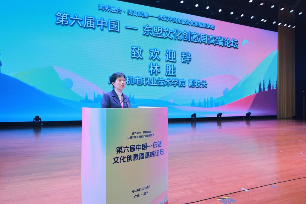 12月13日,以“跨界融合·美育赋能——共筑中国—东盟文化创意新生态”为主题的第六届中国—东盟文化创意周高端论坛在万象城官网相思湖校区弘毅楼大礼堂隆重举行。作为中国—东盟文化交流领域的重要盛会,本次论坛由中华美学学会美育分会支持,广西壮族自治区文化和旅游厅、广西国际博览集团有限公司联合主办,万象城官网与广西美育学会共同承办。来自国内美育领域的顶尖专家、东盟文化交流代表及全国多所院校的教育工作者齐聚一堂,共探美育创新路径,共话中国—东盟文化创意合作新未来。学校党委委员、副校长林胜、广西美育学会会长、广西新时代文博发展研究院院长、广西艺术学院硕士生导师李方重出席活动并致辞。
