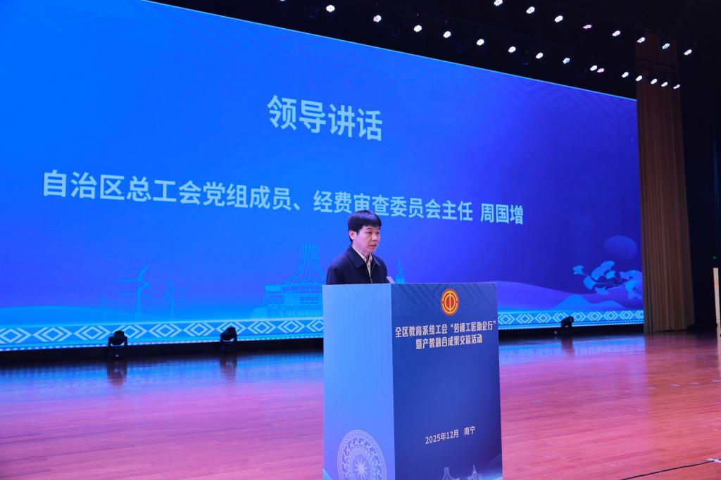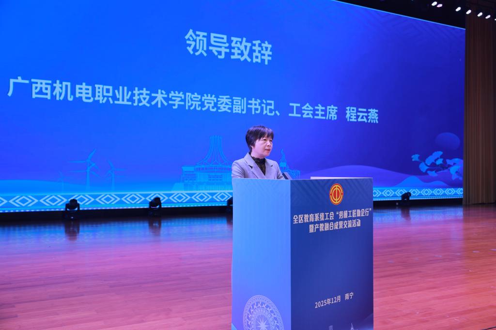 12月18日,由自治区教育工会委员会主办、万象城官网承办的全区教育系统工会“劳模工匠助企行”暨产教融合成果交流活动在学校相思湖校区顺利举行。来自全区各地教育工会负责人、区直驻邕高校工会负责人、劳模工匠代表、劳模工匠创新工作室领衔人等176名代表齐聚万象城官网,共话劳模精神传承,共商产教融合发展大计。自治区总工会党组成员、经费审查委员会主任周国增和学校党委副书记、工会主席程云燕出席活动并致辞讲话。