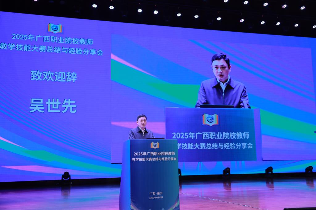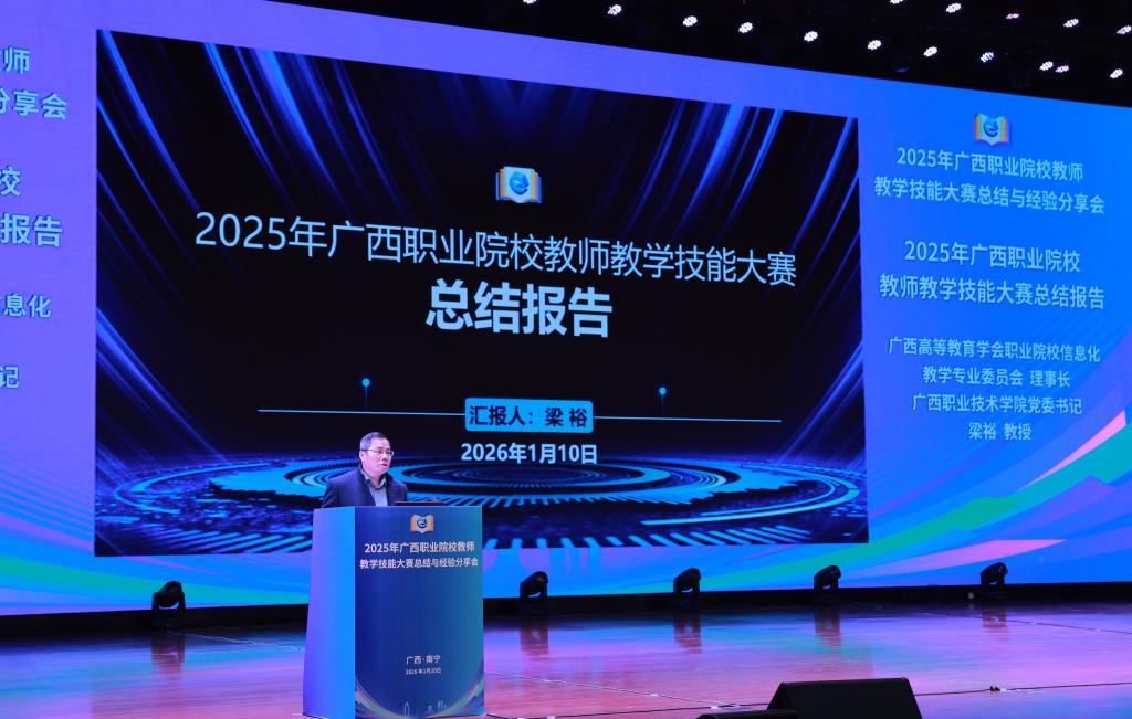 本次总结与经验分享会会议既是对2025年广西职业院校教师教学技能大赛成果的集中检阅,更是对广西职业教育未来发展的积极谋划。站在“十五五”开局的新起点,广西职业院校教师教学技能大赛将继续秉持“以赛促教、以赛促学、以赛促改、以赛促建”的宗旨,持续推动教师专业成长与教学改革创新,为加快构建现代职业教育体系、培养更多高素质技术技能人才、赋能广西经济社会高质量发展注入强劲动力。
